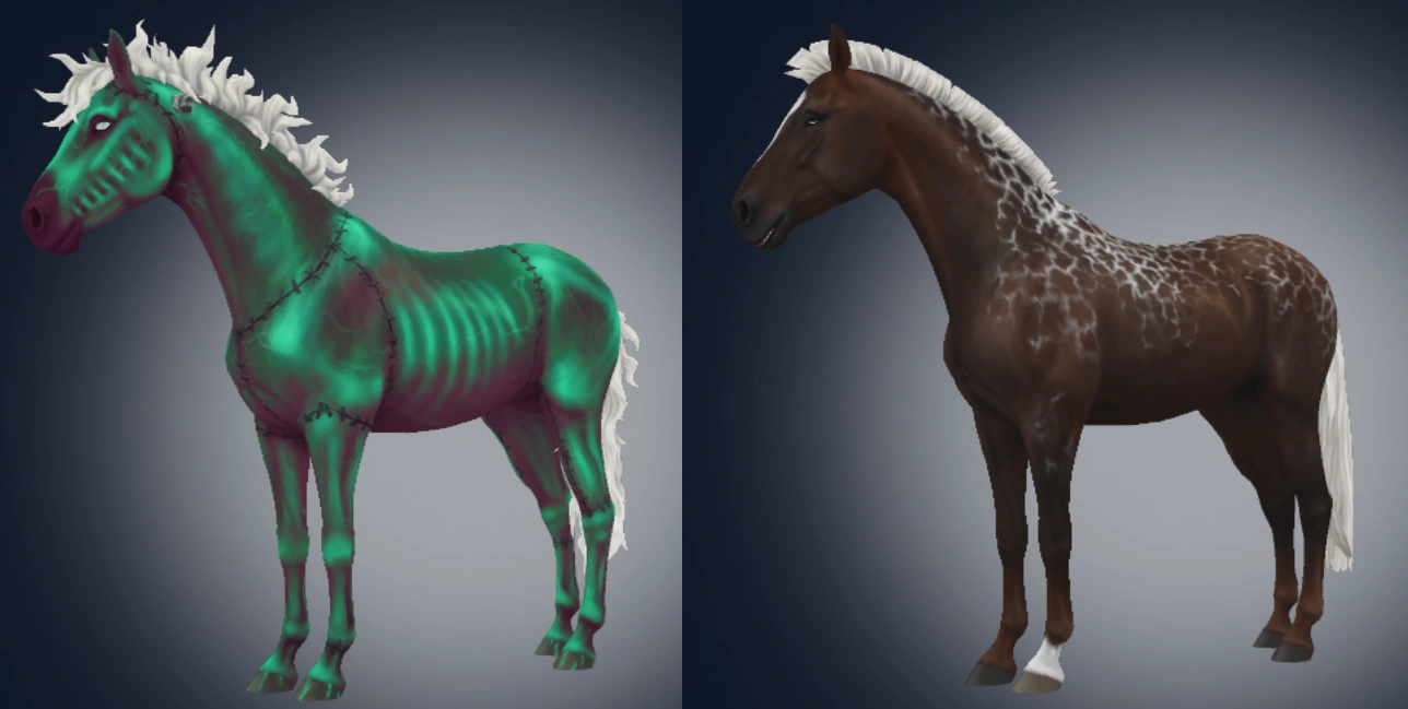 Galvatair pojawił się na Jorvik 8 października 2025 roku z okazji Halloween. Był dostępny do kupna w Twierdzy Galopującego Thompson'a za 900 Star Coins. Jego model oparty jest na koniu hanowerskim. W formie niemagicznej jest maści gniadej okopconej srebrej ze wzorem marmuru.