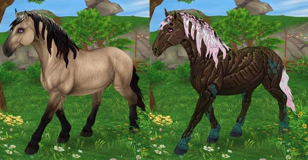 ★ Konie Hanami są związane z drzewami wiśni. Zwierzęta te stanowią symbol odrodzenia i zwiastują wiosnę. Niczym kwiaty przypominają nam o tym, by cieszyć się pięknem dnia dzisiejszego, gdyż jutro piękno to zwiędnie i zniknie, ale kiedyś powróci. Dla kogoś niedoświadczonego Hanami wygląda jak zwykły perszeron, jednak dla osób magicznie uzdolnionych opadająca kwiecista grzywa i podobna do kory maść to naprawdę wyjątkowy widok. Wierzchowiec ten dołączy do Twojej rodziny za 850 Star Coins.