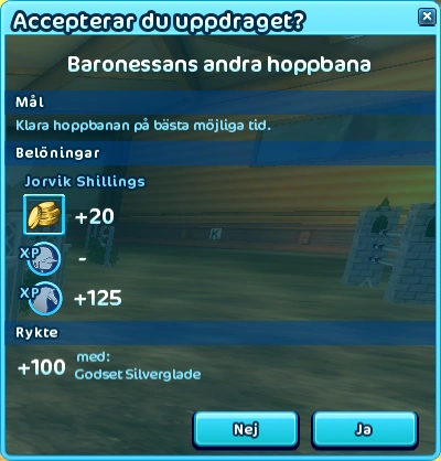 "Välkommen att försöka slå bästa resultaten här på Baronessans andra hoppbana. Kom ihåg att du lär dig efterhand att hitta vägen och att optimera din gångart till de olika hindren. Lycka till!" - Linn