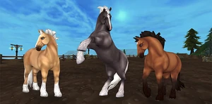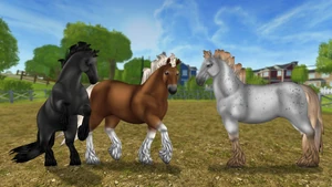 Dessa hästar liknar Shirehästen. De var tillgängliga under 2017-02-01 till 2017-02-14, 2018-07-18 till 2018-08-01 och 2019-09-18 till 2019-10-16. Alla tre hästarna kostade 599 Star Coins.