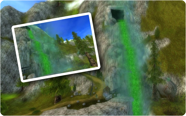 Officiell bild på vattenfall färgade gröna pga kristallerna.
