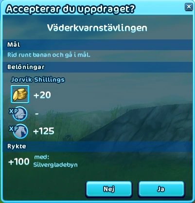 "Hej <spelarens namn>. Så du känner dig redo att utmanad väderkvarnstävlingen igen? Det är bra. Och du då <hästens namn>, är du redo? Bra! Sitt opp så ska jag bara ta upp mitt tidtagaryr så kör vi. Lycka till!" - Will