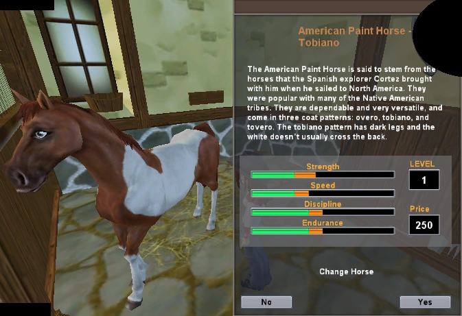 - The American Paint horse is the only horse breed available in two different colors in the same game in the original Star Stable series.