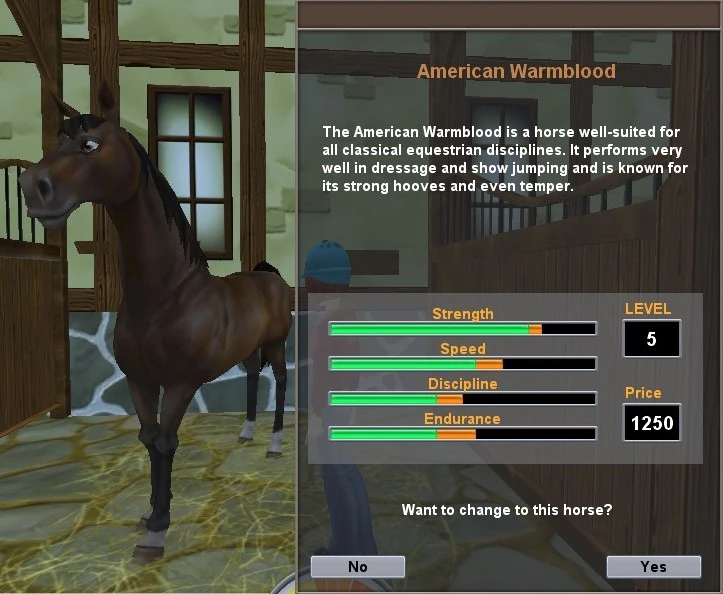 "The American Warmblood is a horse well-suited for all classical equestrian disciplines. It performs very well in dressage and show jumping and is known for its strong hooves and even temper." - Star Stable: The Spring Rider