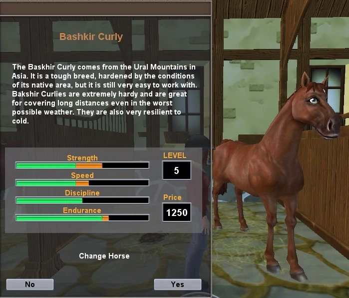 The game incorrectly identifies this horse as the Bashkir Curly (American Curly Horse) when the game's model and description identify the horse as the Bashkir Horse, which is a different breed altogether from the Bashkir Curly.
