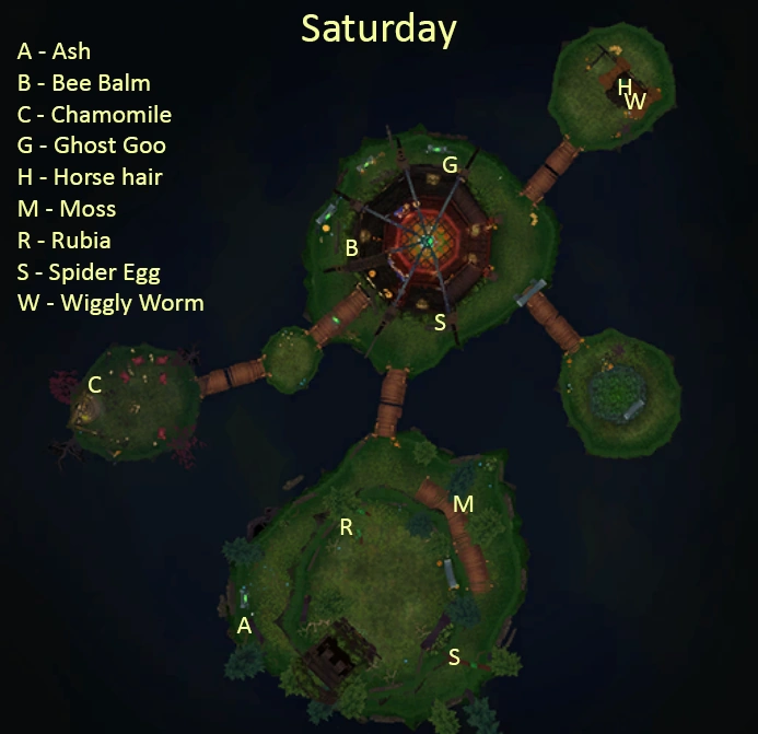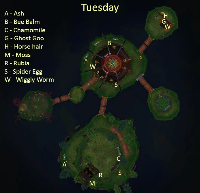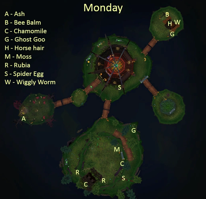 The ingredients are all located in the keep but they change location each day of the week. Once an ingredient is collected, it will not respawn until the player exits and reenters the keep. However, five of the ingredients do have special circumstances regarding their spawn locations and spawn rate, these are the four flowers and the Soul Shards.