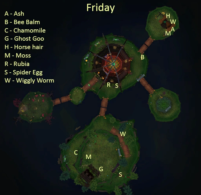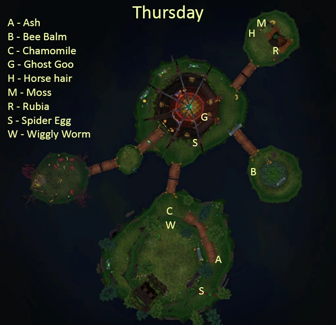 The four flower ingredients can also be collected all over Jorvik if the player has unlocked either the Druidism quests in the Hollow Woods or Farah's Workshop quests in Valedale Village. If neither of these quests have been completed, the flower ingredients will only spawn in the keep.