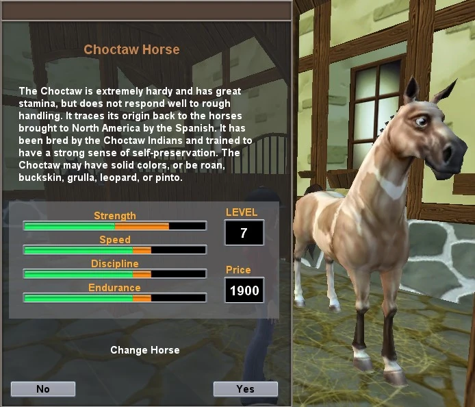 The Choctaw Horse is available in Star Stable: The Summer Rider, at Snakebite Farm. It comes in one color, Buckskin Pinto.