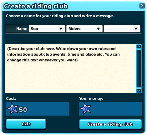 Star Riders that are level 5 and up have access to creating their own riding club. However, no requirements are needed when joining a club.