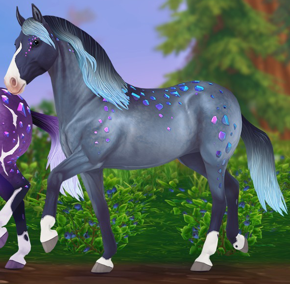 - Natural color: Blue/Grey roan with iridescent blue gems and glowing blue ombre mane and tail