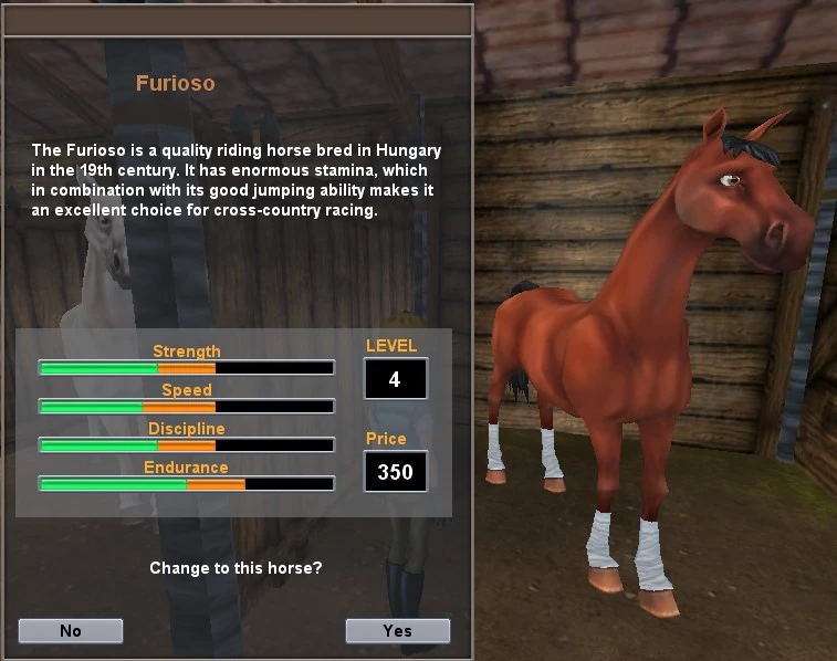 "The Furioso is a quality riding horse bred in Hungary in the 19th century. It has enormous stamina, which in combination with its good jumping ability makes it an excellent choice for cross-country racing." - Star Stable: The Autumn Rider
