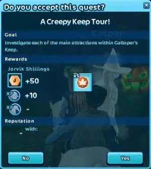 Galloper's Playground! Is a side questline available during the Halloween event in Star Stable Online. In this quest the player is given a tour of Galloper's Keep by Kasper.