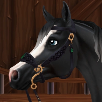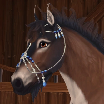 | Mystic Hackamore | The Mystic Hackamore is a fictional hackamore bridle traditionally worn by the Mystic Jorvik Wild Horse herd in Northern Wildwoods. It is a bitless bridle made of silver medal and decorated with blue gemstones. It also has a matching leg accessory which is worn along with the bridle when equipped. Mystic horses wear this bridle to become closer to the Sentinel Tree.