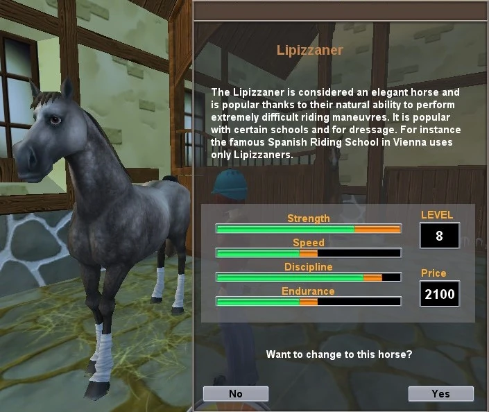 "The Lipizzaner is considered an elegant horse and is popular thanks to their natural ability to perform extremely difficult riding maneuvers. It is popular with certain schools and for dressage. For instance the famous Spanish Riding School in Vienna uses only Lipizzaners. - Star Stable: The Spring Rider