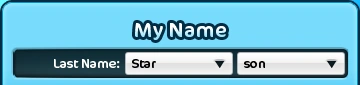 In Star Stable Online the player choose their last name trough a scroll bar. The last name is put together by two different words you can find in the scroll bars. This is a list of all the selectable last names.